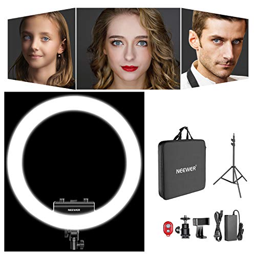 ![Neewer Ring Light Kit [Upgraded Version-1.8cm Ultra Slim]-18 inches,3200-5600K,Dimmable LED Ring Light with Light Stand, Phone Clip,Hot Shoe Adapter for Portrait Makeup Video Shooting (Black) - Neewer](https://images-na.ssl-images-amazon.com/images/I/41DazQBJYxL.jpg)