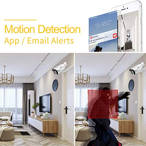 - 【MOTION DETECTION & EMAIL ALERT】--This video surveillance camera system can be programmed to record when a motion Is detected to save hard drive space, even don't miss important events. Receive a notice by E-mail alert function when motions are activated; The system can be customized for single channel or all 4channels with motion detect recording as per requirements.