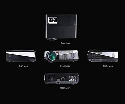 - 1.【Most Bright LED Projector】: 4500 lumens led light utilization efficiency, over 60% more bright than similar projectors, 230w high power US Cree lamp( max power as we know), 6 layers big-caliber high transparency coated glasses lens instead of common resin one. Higher level 5.8 "TFT panel ,native 1280x800 support 1080p full hd,2K 4K (limit within 100M bit rate ,60HZ)