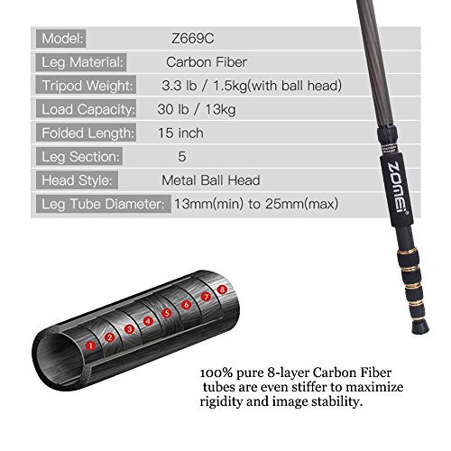 Title: ZOMEi Z669C Portable Carbon Tripod Monopod Kit & Ball Head Compact for Canon Sony, Nikon, Samsung, Panasonic, Olympus, Kodak, Fuji, Cameras and Video Camera